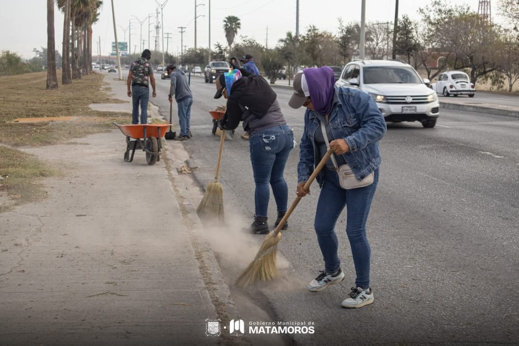 Matamoros, Tam.– El Gobierno Municipal que encabeza Beto Granados continúa fortaleciendo las acciones de limpieza y mantenimiento urbano en distintos sectores de la ciudad, con el objetivo de mejorar la imagen urbana y brindar espacios más seguros y ordenados a las familias matamorenses.