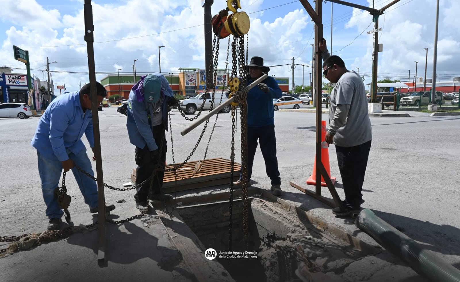 Personal especializado de la Junta de Aguas y Drenaje retiró una bomba eléctrica de 4 pulgadas y 7 caballos de fuerza (HP), la cual será enviada a mantenimiento. Como parte del compromiso del gobierno municipal por optimizar la infraestructura hidráulica, en su lugar se instaló una bomba de mayor capacidad, de 6 pulgadas de descarga y 10 HP, que permitirá mejorar considerablemente el funcionamiento del colector de la zona.