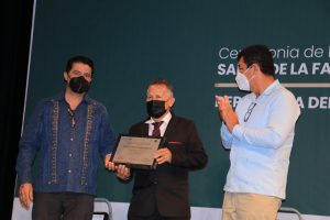 En la ceremonia de reconocimiento y entronización de las glorias del Deporte que fueron galardonadas por propuesta del Consejo Selectivo, acompañaron al Presidente Municipal, el secretario del Ayuntamiento, Carlos Ballesteros Gálvez; el secretario de Educación, Cultura y Deporte, Guillermo Villasana Velázquez y el presidente de la Comisión del Deporte en el Cabildo, José Manuel Raygoza García.