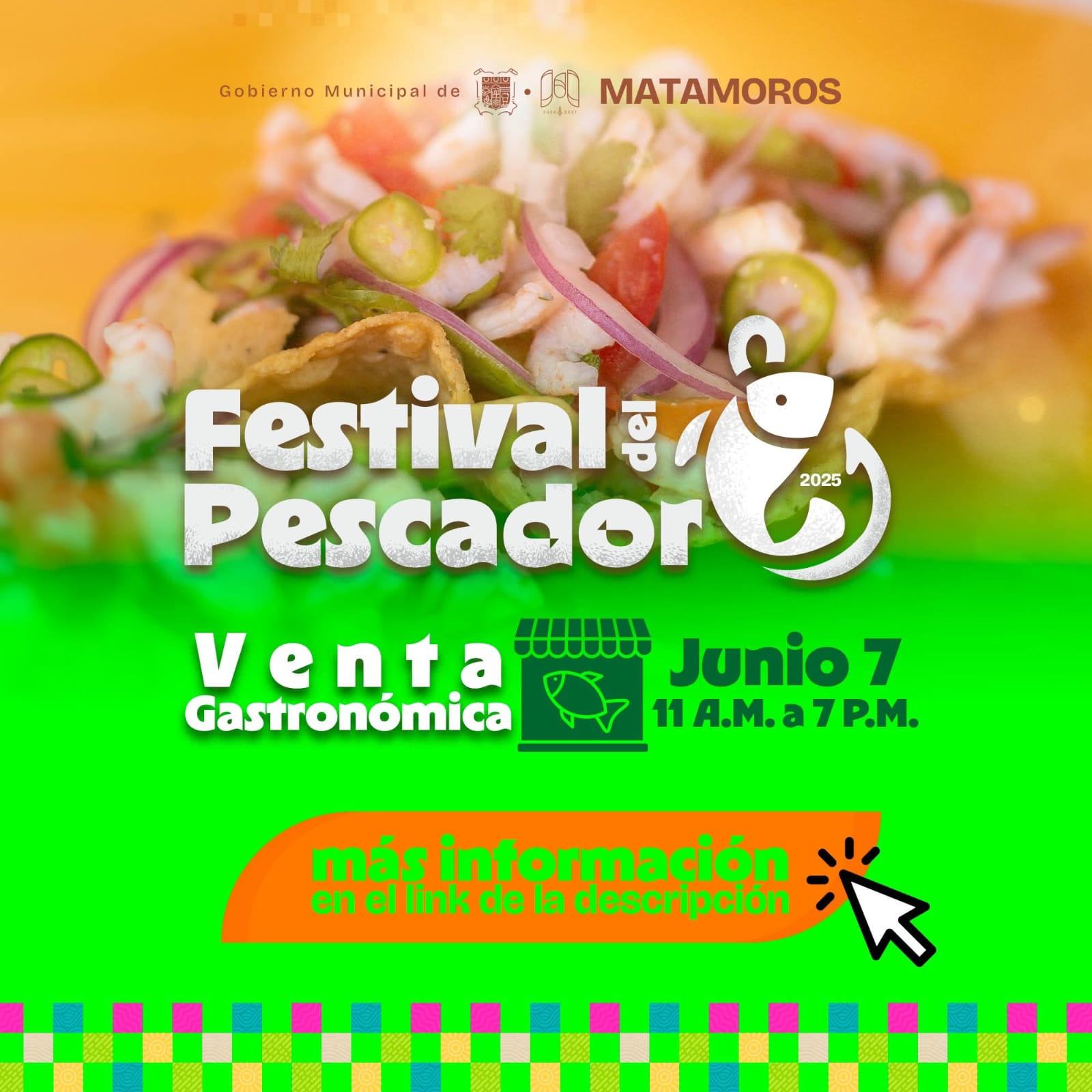 La actividad se llevará a cabo el próximo 7 de junio, en un horario de 11:00 a.m. a 7:00 p.m., como parte de las celebraciones del festival. La Venta Gastronómica promete convertirse en un punto de encuentro donde los sabores locales sean protagonistas, destacando la riqueza cultural y gastronómica que caracteriza a Matamoros.