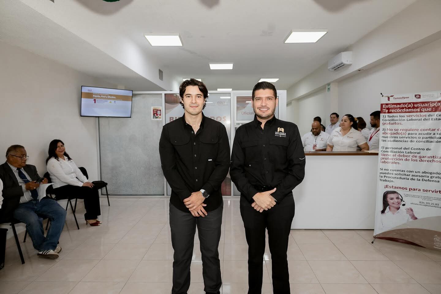 El Secretario del Trabajo y Previsión Social de Tamaulipas, Luis Gerardo Illoldi Reyes, visitó Matamoros, donde acompañado por el alcalde Beto Granados recorrió las instalaciones del Centro de Conciliación Laboral de Tamaulipas.