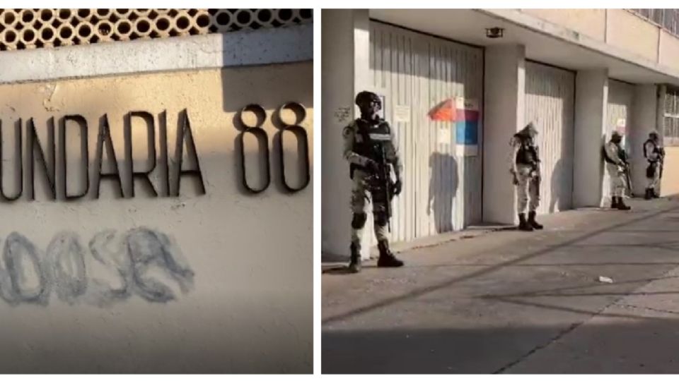 Aunque hoy no hay clases por ser el último viernes del mes, elementos de la Guardia Nacional permanecen al resguardo del plantel ubicado en la colonia Jardín Balbuena.