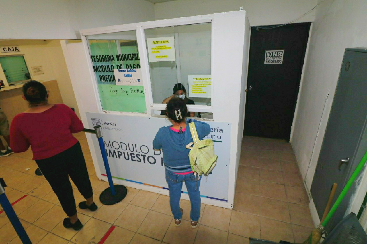 El Gobierno Municipal de Matamoros a través de la tesorería municipal informa a los contribuyentes del impuesto predial que ya están en operación tres módulos de cobro instalados en las siguientes ubicaciones: WALMART, oficinas de JAD en la avenida Roberto Guerra y en la Galería Jaime Garza Salinas, ubicada en el parque Olímpico, frente a las oficinas de la Secretaría de Relaciones Exteriores.