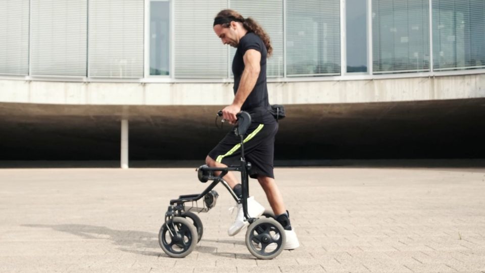 En un video facilitado por el EPFL se ve al paciente mostrando cómo funciona este sistema: una presión sobre el botón del lado derecho de su andador más su voluntad de activar sus músculos hacen posible que su pierna izquierda se flexione y luego se pose unos centímetros más adelante. Al activar el botón de la izquierda es la pierna derecha la que a su turno da un paso y así empieza a caminar.