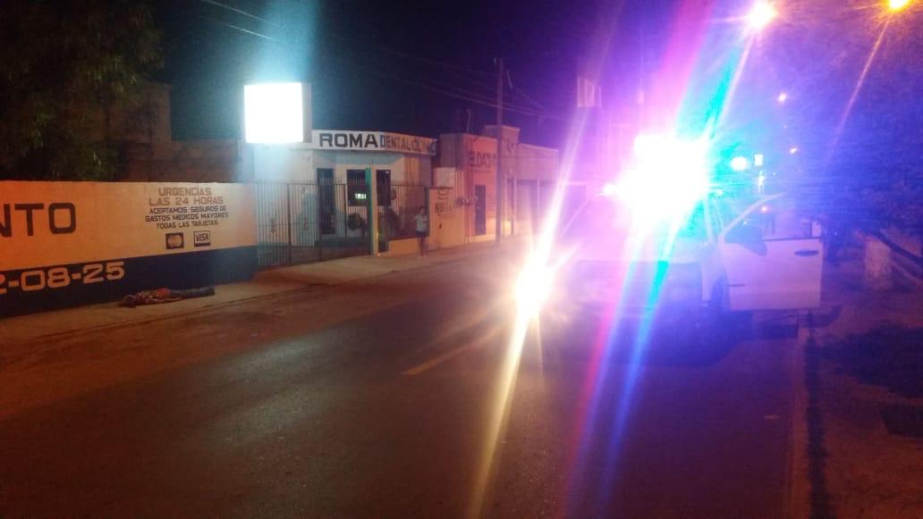 Un hombre que hasta el momento no ha sido identificado murió al instante al ser atropellado quedando tirado en la banqueta.