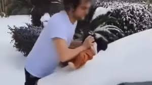 El perturbador video fue compartido en TikTok y en las imágenes se puede ver que el hombre sostiene al bebé abrigado con ambas manos y usando el cuerpo del bebé para limpiar centímetros de nieve del parabrisas de un vehículo Hyundai Elantra.