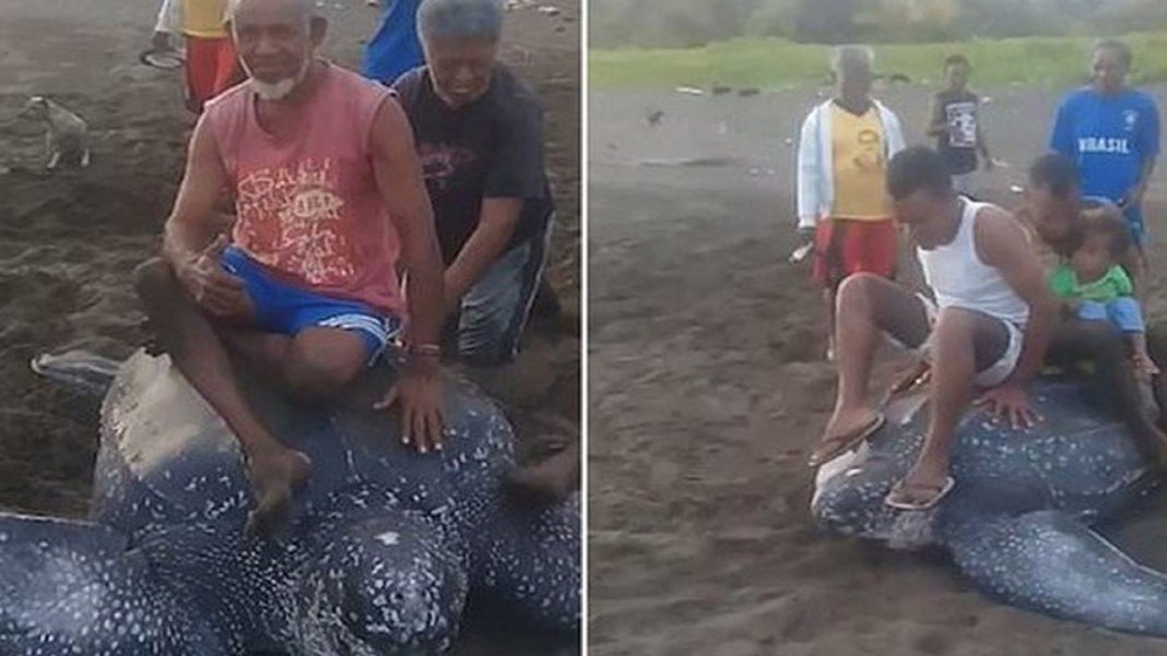 Una tortuga laúd, de las cuales ya existen pocas en el mundo, fue maltratada por un grupo de hombres en Indonesia quienes se tomaron turnos para subirse al caparazón y montarla como si fuera un caballo.