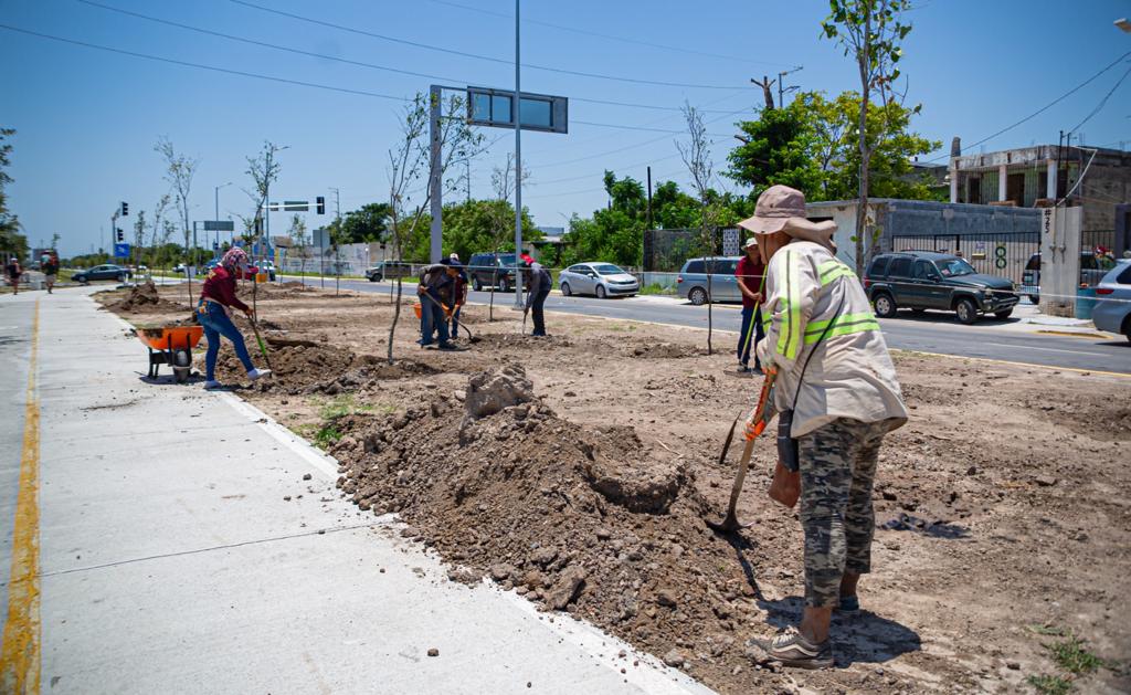 El Ayuntamiento de Matamoros, a través de la Dirección de Espacios Públicos Municipales realiza una importante campaña de reforestación en las principales avenidas de esta ciudad donde plantan encinos, considerados árboles de la región.