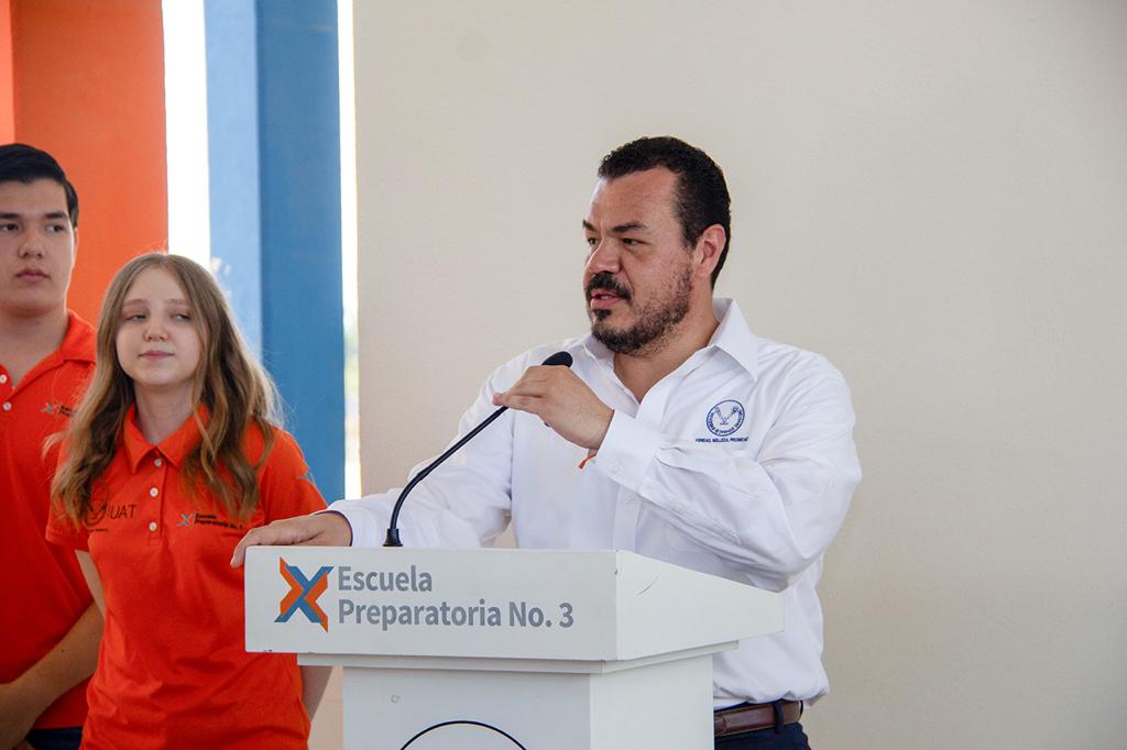 En su mensaje, el rector felicitó a la comunidad académica y estudiantil, además de reconocer el esfuerzo y trabajo sostenido de su personal directivo y administrativo para seguir superándose con el objetivo de ofrecer una educación de excelencia a la juventud que se prepara en el bachillerato.