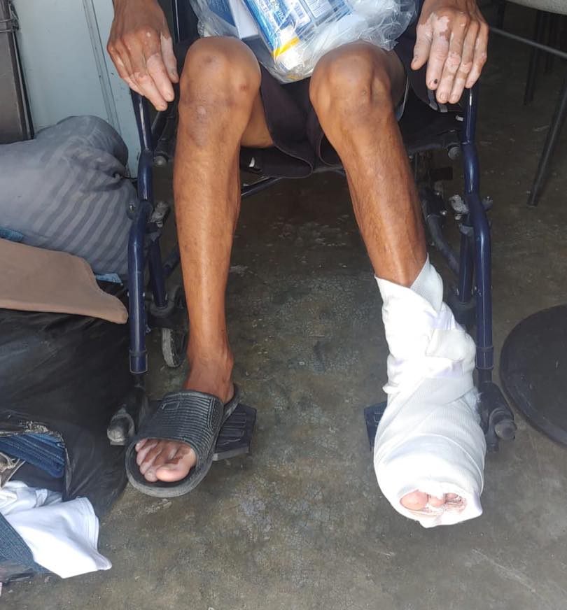 Don Víctor empezó con una llaga en el pie izquierdo, con el paso de el tiempo cambio el color y la llaga creció.