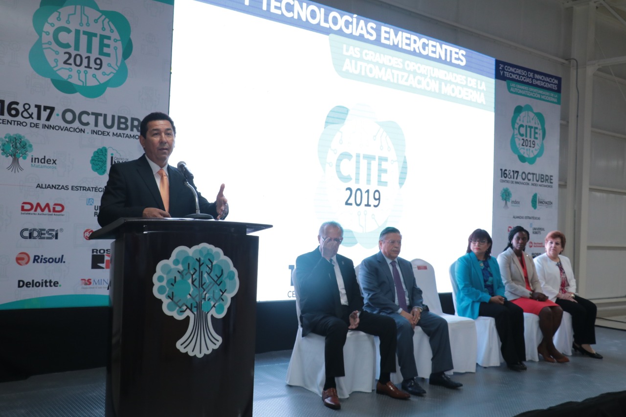 El alcalde Mario Alberto López Hernández acompañado de directivos de INDEX Matamoros; de la Cónsul Neda Brown y de directivos de instituciones educativas, inauguró el 2º. Congreso de Innovación y Tecnologías Emergentes organizado por INDEX Matamoros.