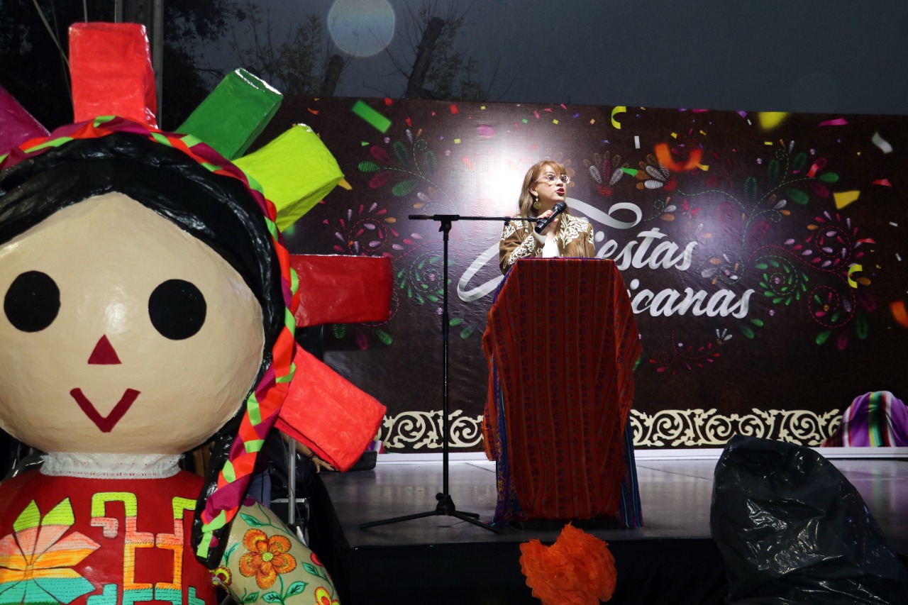 Estos son los festejos más alegres del año; nuestra identidad se pinta de colores y se transforma en diferentes sentimientos de amistad, hermandad y tradiciones, dijo la presidenta del Comité de Fiestas Mexicanas, en presencia de autoridades municipales y ciudadanos que congregaron en la plaza principal para participar en la celebración.