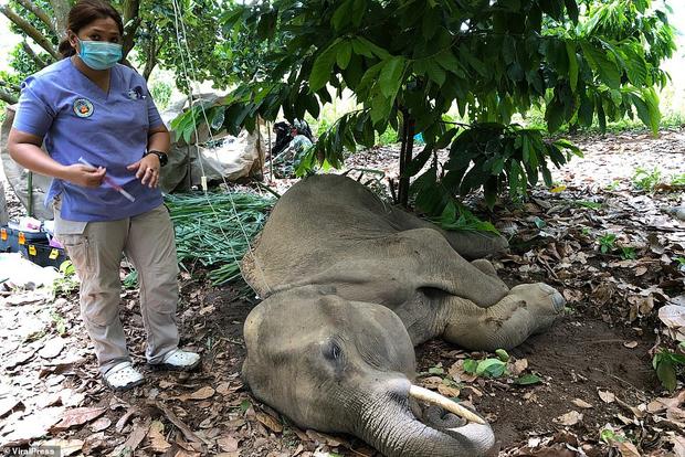 Joven elefante muere después de que un cazador le disparara a pesar de la batalla de dos días para salvarlo cuando fue encontrado gravemente herido en Tailandia.
