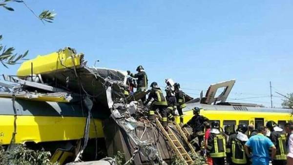 Dos trenes de pasajeros chocaron de frente hoy en la sureña región de Puglia, provocando la muerte de 23 personas y heridas a más de 40, en una de las tragedias más graves ocurridas en Italia en las últimas décadas.