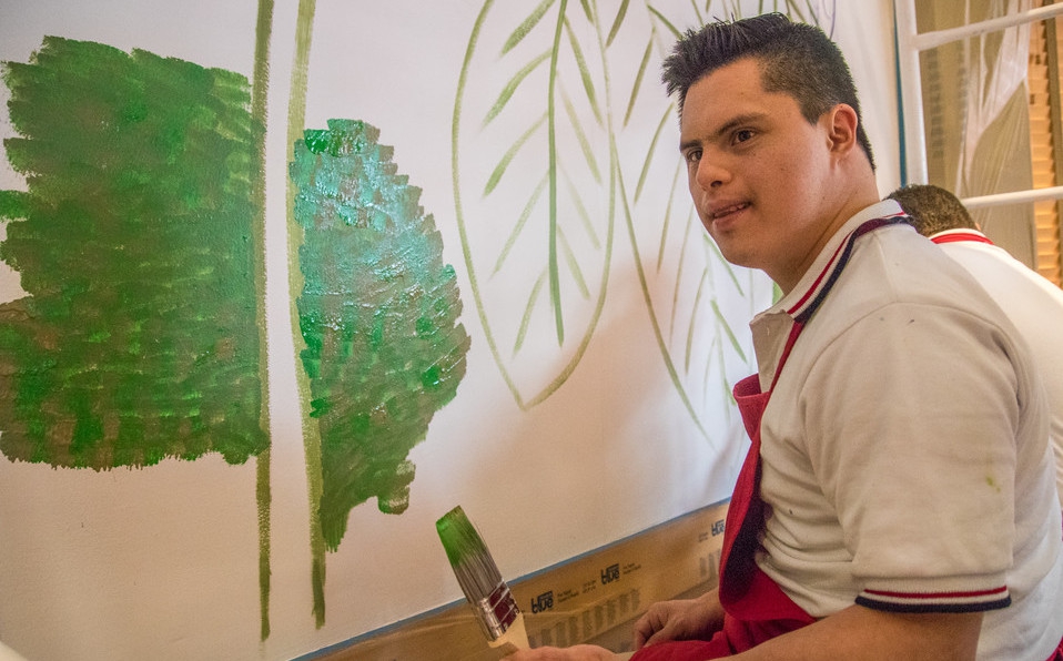 Starbucks y la Escuela Mexicana de Arte Down, que forma parte de la Fundación John Langdon Down, se unieron para que cuatro artistas que padecen este síndrome pintaran un mural en la tienda del Pedregal.