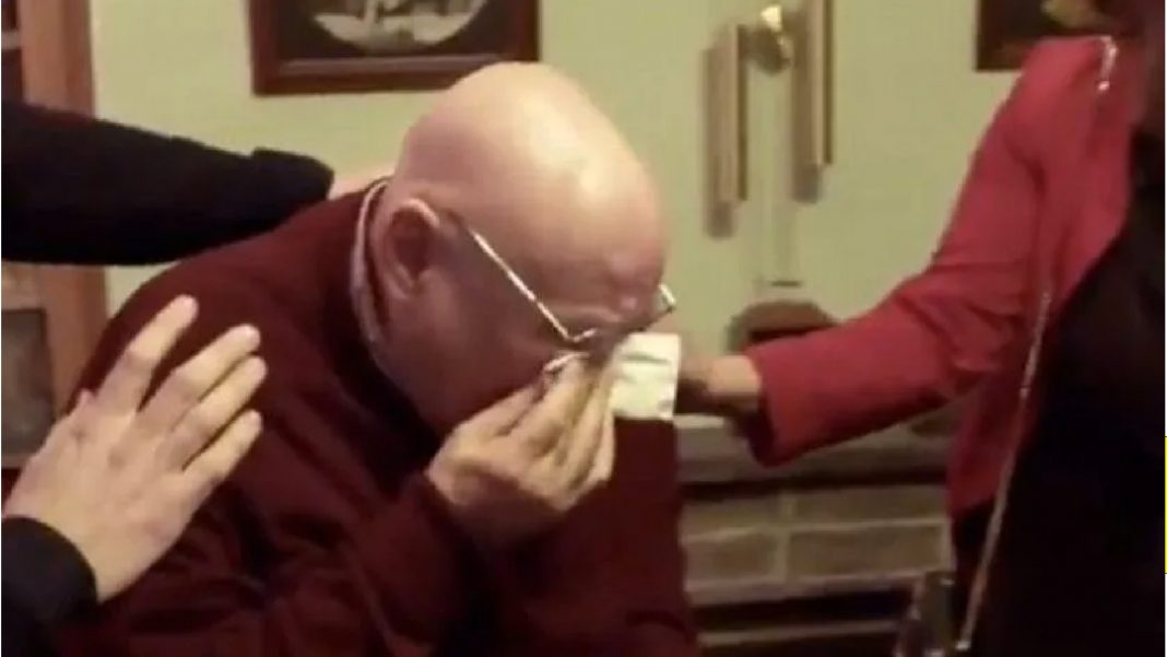 El hombre no pudo soportar la emoción y comenzó a llorar, mientras se secaba las lágrimas.