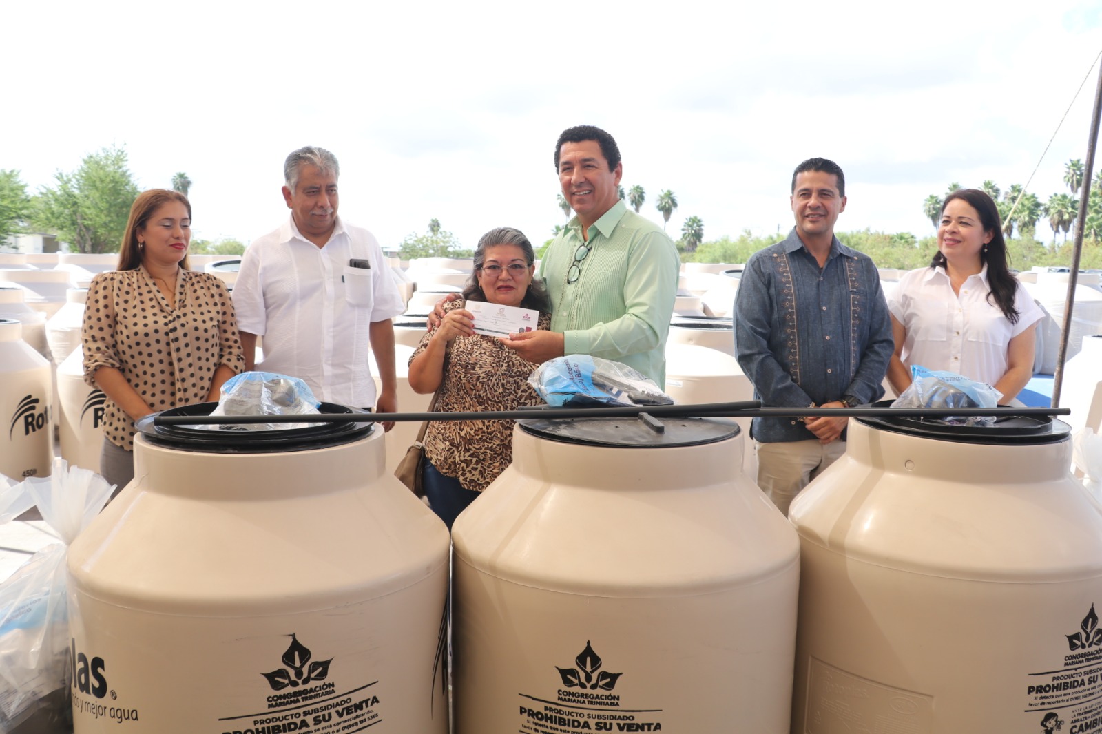 La entrega de los contenedores para almacenar 450 litros del vital líquido fue posible, gracias a la participación tripartita del Gobierno de Matamoros, de la Congregación “Mariana Trinitaria” y del propio beneficiario.