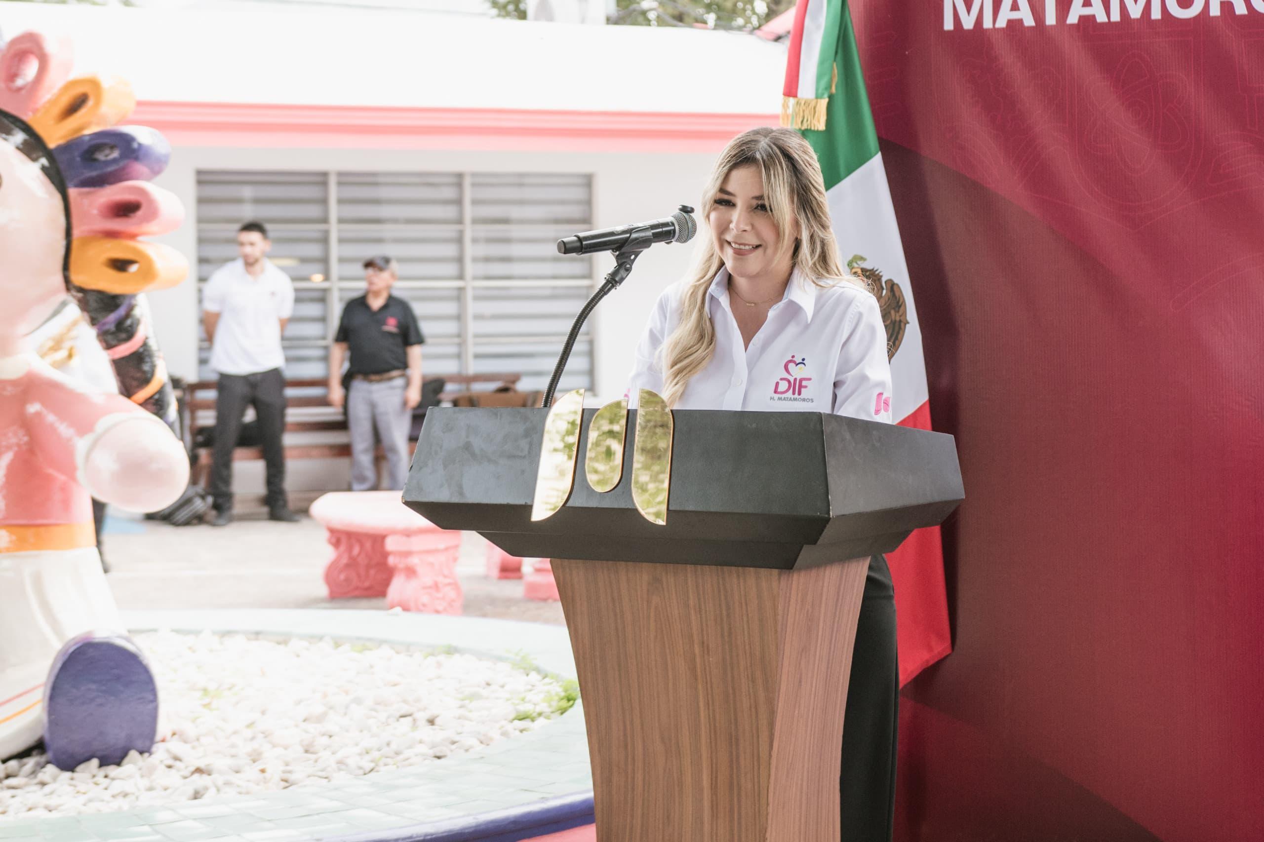 En su mensaje la Presidenta de DIF Matamoros, Ana Ariceaga de Granados, expresó: “Esta ceremonia cívica es aún más significativa hacerlo junto a este gran equipo del DIF Matamoros, porque sé que cada uno de ustedes entrega su corazón en cada tarea, en cada servicio y en cada sonrisa que logran crear en las personas que más lo necesitan. Gracias por su dedicación, por su entrega y por hacer de este organismo un espacio de esperanza y transformación”.