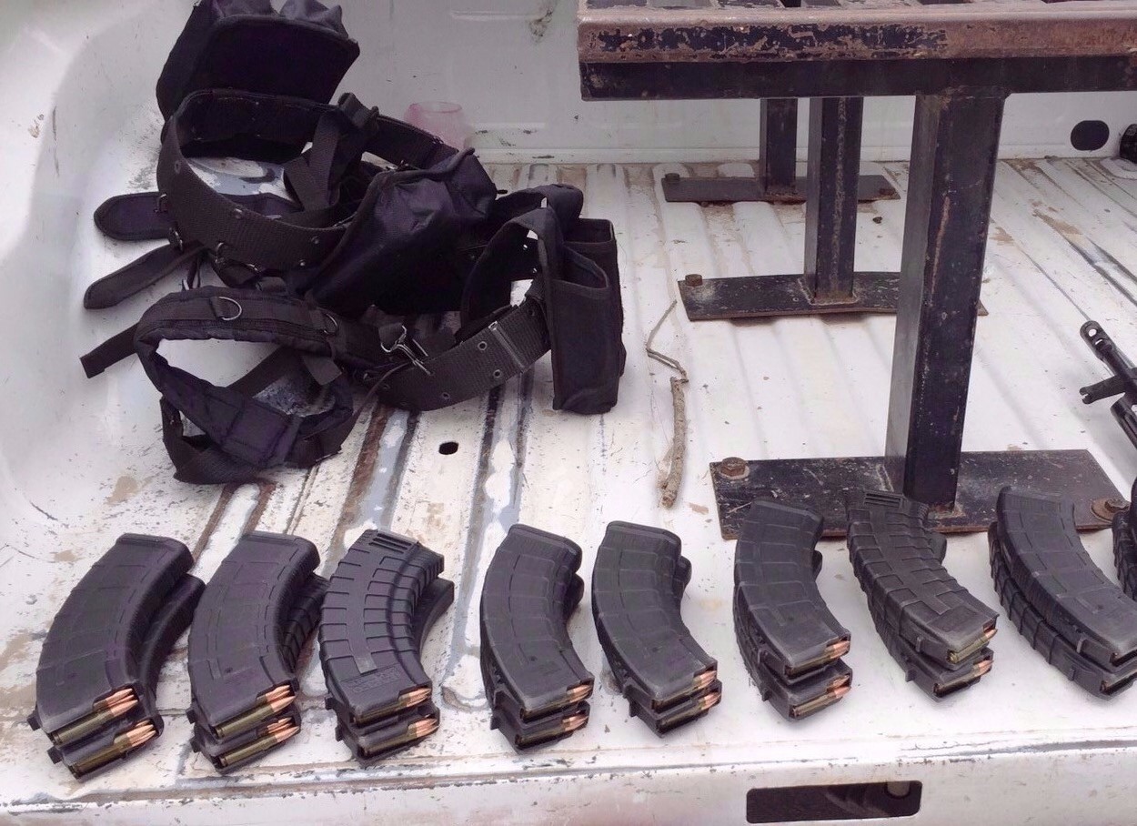 En ese lugar, los elementos de Fuerza Tamaulipas detuvieron a Pablo Cortés Benítez, de 22 años, a quien se le encontró en posesión de un fusil AR-15, tres fusiles AK-47, 59 cargadores abastecidos, 973 cartuchos de diversos calibres y una bolsa de plástico conteniendo marihuana.
