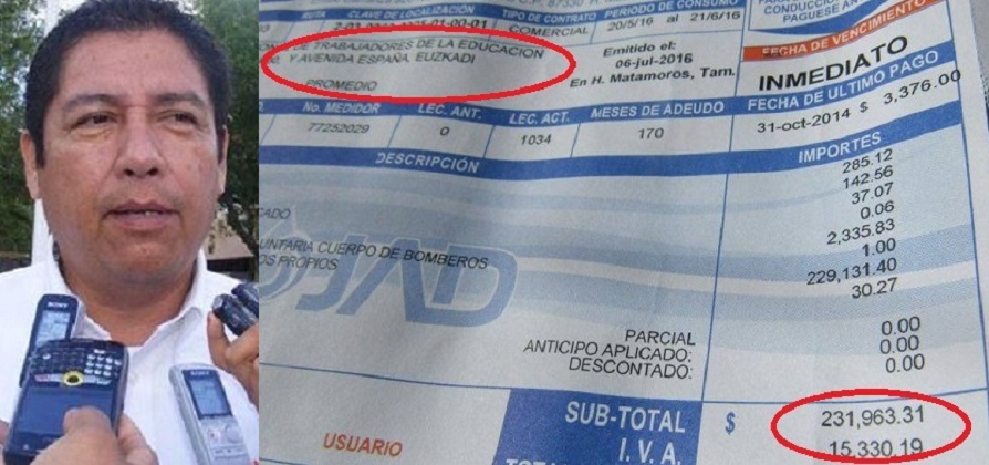 Por no contar con el apoyo económico del Sindicato Nacional de Trabajadores de la Educación, SNTE, la coordinación magisterial debe 247 mil 293 pesos de agua al Ayuntamiento de Matamoros, en un adeudo que data de hace 14 años.
