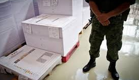 Patrullas de la policía federal y estatal custodiaron la llegada y la distribución de las boletas que se utilizarán en los comicios del 8 de junio, en los que se elegirá gobernador, presidentes municipales y se renovará el Congreso local.