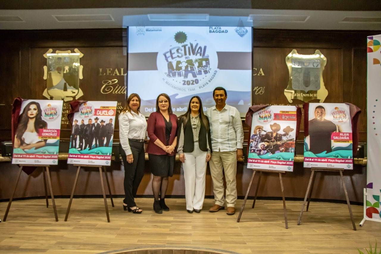 El alcalde Mario Alberto López Hernández y su esposa Marsella Huerta de López develaron las fotografías de los invitados al Festival del Mar de Playa Bagdad, entre ellos, Marisol González, quien será coronada como reina de estos festejos.