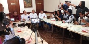 En el encuentro con los representantes de los medios de comunicación, Cantú Martínez fue acompañado por los candidatos de MORENA a las diputaciones locales: Elifa Gómez, candidato por el Distrito 9; José Angel Frías, del Distrito 10 y Carlos Eliud Pérez González, por el Distrito 12; al final se sumó Leticia Sánchez Guillermo, candidata del Distrito 11, quien atendía una entrevista radiofónica.