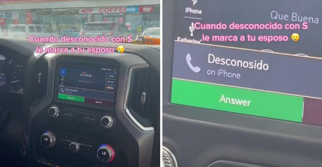 Se trata de Katherine Perales, una joven que mostró en vivo y en directo el engaño cuando un contacto con el nombre de “Desconosido” marcó al teléfono de su esposo, aparato que estaba en un trípode que se utiliza para los carros.