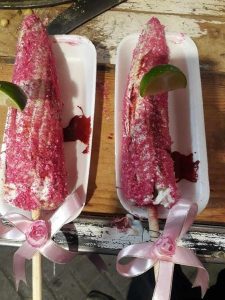 Ambas se dieron a la tarea de confeccionar con listón rosa los moños que llevaron al puesto ubicado en la calle Morelos entre 5 y 6 del Centro Histórico de Matamoros, dando lugar a los primeros elotes coquettes de la Heroica,