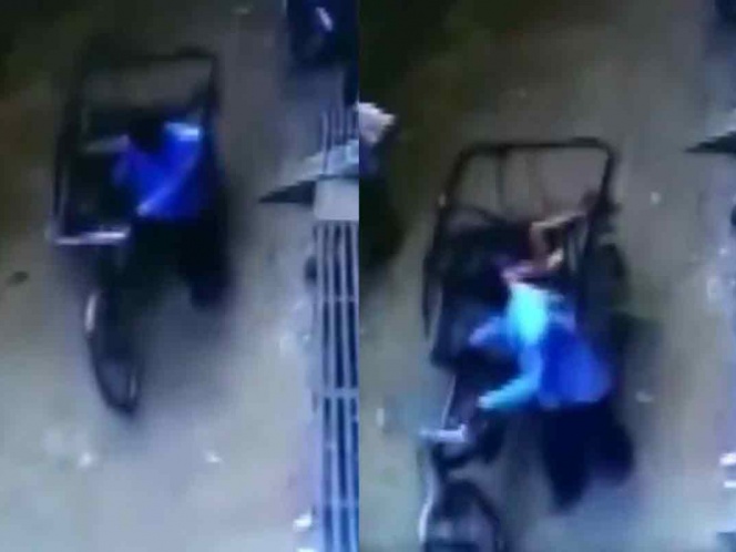 Increíblemente y como de película aterrizó en el asiento trasero de un bicitaxi que pasaba por la banqueta.