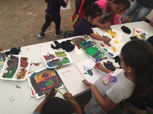 Este martes los niños migrantes recibieronn su tercera clase de pintura en el campamento.