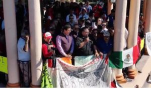 Ya en la explanada conocieron el mensaje del alcalde de Matamoros, Mario López Hernández, quien afirmo que ha dado seguimiento a su movimiento y logro comunicación con los dos lideres de los trabajadores, Juan Villafuerte Morales y Jesus Mendoza Reyes, a quienes urgió acelerar la solución al conflicto.