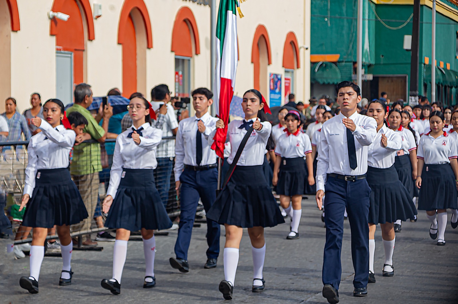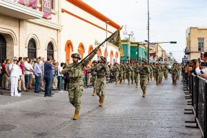 Genoveva Hi González, secretaria de Educación, Cultura y Deporte en el Municipio informó que el desfile conmemorativo es organizado a través de la Dirección de Educación Básica en coordinación con la Secretaría de Marina Armada de México y la Secretaría de la Defensa Nacional.