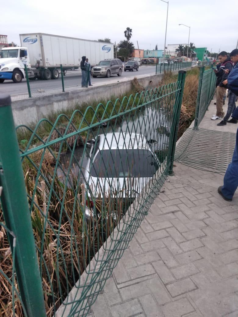 Una pareja de la tercera edad, resultaron lesionados al caer con todo y carro al canal de aguas negras que se encuentra en el Libramiento Emilio Portes Gil, a la altura de la colonia la Joya.