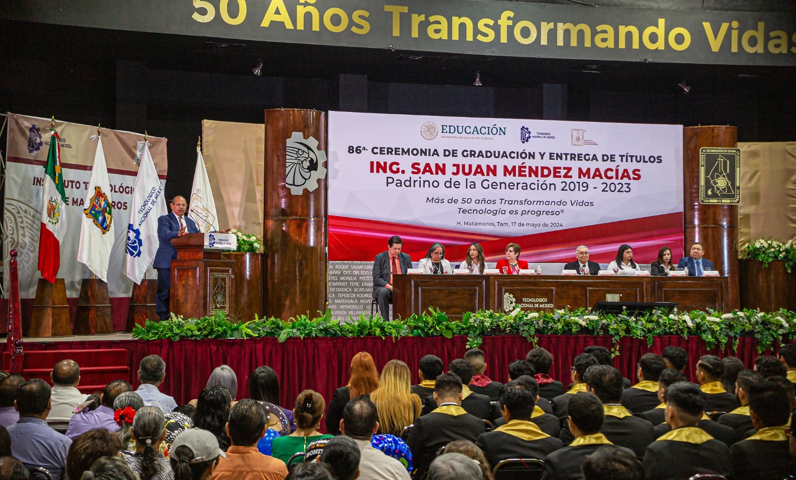 Autoridades municipales asistieron este día a la 86ª. Ceremonia de Graduación y Entrega de Títulos, Generación 2019-2023 “Ing. San Juan Méndez Macías” del Instituto Tecnológico de Matamoros, realizada en el gimnasio de la institución educativa.
