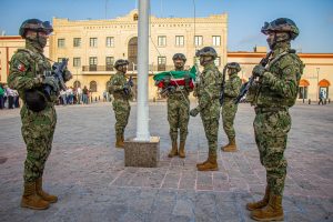 A muy temprana hora, el Alcalde arribó a la plaza principal “Miguel Hidalgo” para presidir los honores a la bandera, acompañado de autoridades educativas, civiles y militares.