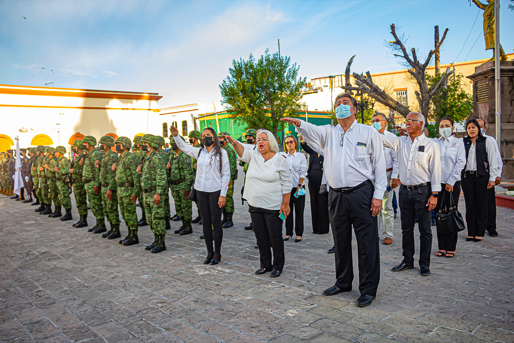Para seguir fomentando los valores cívicos entre los servidores públicos, este lunes el alcalde Mario Alberto López Hernández encabezó la ceremonia de honores a la Bandera correspondientes al mes de octubre, cuya organización estuvo a cargo de la Secretaría de Fomento Económico y del Empleo.En la ceremonia el Presidente Municipal fue acompañado por el Contralmirante Cuerpo General Diplomado Estado Mayor, Luis Lázaro Cornejo Olivares, Comandante de la Primera Zona Naval y por el General Brigadier Diplomado Estado Mayor, Julio César Islas Sánchez, Comandante de la Guarnición Militar.También estuvieron presentes: el Secretario del Ayuntamiento, Carlos Ballesteros Gálvez; el Secretario de Fomento Económico y del Empleo, Jorge Guerra Adame y el presidente de la Comisión de Educación en el Cabildo, el Octavo Regidor Andrés Andrade Márquez.En el acto cívico, se dio lectura a las efemérides y al valor del mes, correspondiendo a la “Responsabilidad”, definiéndola como la cualidad que tiene aquel individuo que cumple sus obligaciones o promesas y asume las consecuencias de sus actos, cuando las realiza de manera consciente e intencionada.