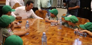 Reunidos en la sala “Benito Juárez” los pequeños que integran la categoría antes mencionada, con mucha emoción le platicaron al Presidente Municipal que ganaron un campeonato distrital y que competirán en el encuentro nacional, que se llevará a cabo en Monterrey, Nuevo León, del 19 al 27 de julio.