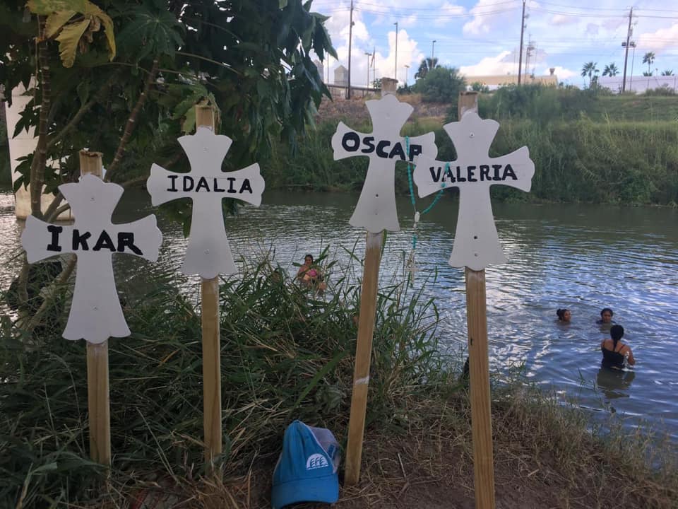 En honor a Óscar y su hija Valeria, a Idalia y a su hijo Ikar, quienes lamentablemente han muerto al intentar cruzar hacia el lado americano, se han puesto cuatro cruces en el bordo del río bravo a la altura del puente nuevo.