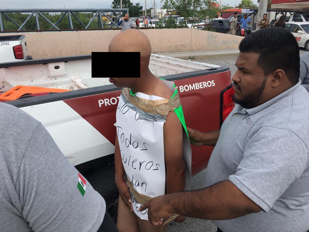El hombre de entre 30 y 35 años fue abandonado sin ropa y apenas cubierto con dos cartulinas, una dictaba “Esto me pasa por rata”.
