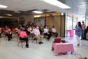 Esta plática explicó la conferencista, está dirigida a todas las mujeres con la finalidad de motivarlas a que ellas mismas se hagan la autoexploración para detectar algún indicativo que pudiera relacionarse con el cáncer de mama.