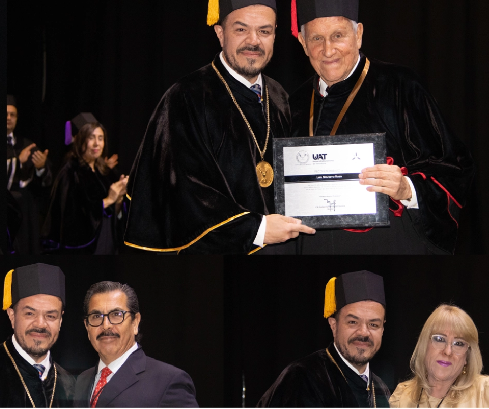 En ese contexto, correspondió al rector Guillermo Mendoza Cavazos entregar por primera ocasión la presea conmemorativa, galardón recibido por el C. P. Luis Navarro Roso, decano de la UAT. Mendoza Cavazos destacó la importancia de reconocer en este acto la trayectoria docente de más de 55 años y, de paso, plasmar en la historia de la Universidad a quienes han dejado su vida en las aulas de la máxima casa de estudios de Tamaulipas.