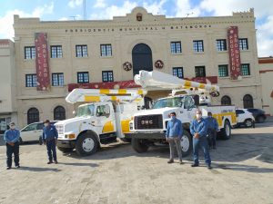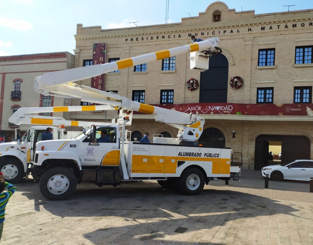 Para seguir avanzando con mayor celeridad en la modernización del alumbrado público en Matamoros, este sábado el Presidente Municipal entregó dos unidades con canastilla a la Secretaría de Servicios Públicos Municipales, adquiridos con recursos propios.
