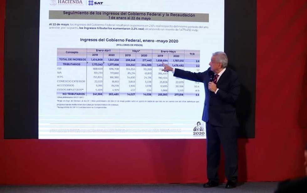 El presidente reportó un aumento de 2.6% en términos reales, unos 100 mmdp, en recaudación en periodo de enero a mayo
