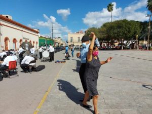 El músico, quién es hijo de José Alberto Morales Sanchez el último director de la Banda Municipal y quien murió en agosto de Covid, estuvo al frente del contingente que cerró la callé Sexta y comenzó a tocar danzones en protesta por el despido de sus compañeros a quienes se les dejo de pagar desde el 11 de septiembre.