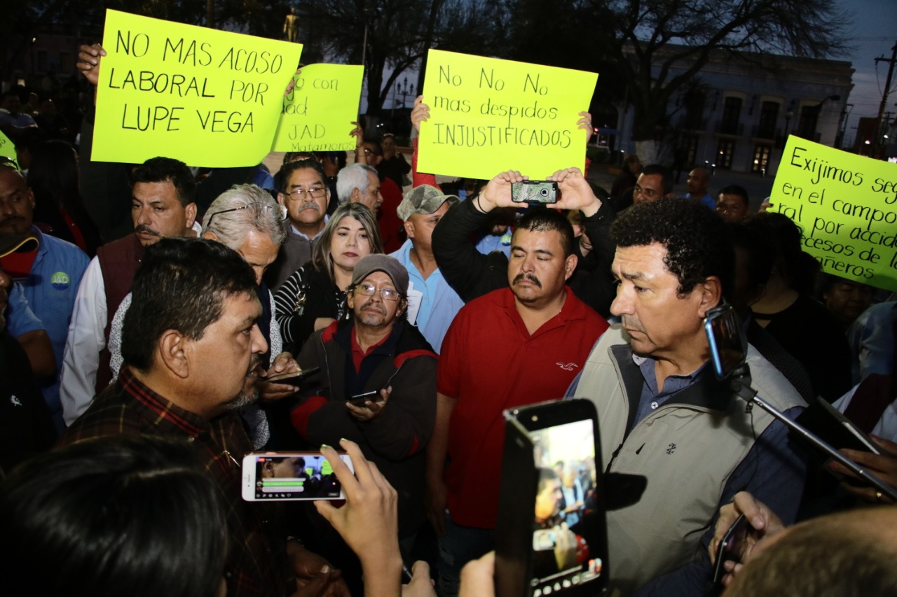 Más de 100 trabajadores de la Junta de Aguas y Drenaje protestaron este viernes por la tarde, por las arbitrariedades que está cometiendo con los trabajadores sindicalizados el gerente de la paramunicipal, Guillermo Lash de la Fuente y su directora de Recursos Humanos, Guadalupe Vega, motivo por el cual, solicitaron el apoyo del alcalde Mario Alberto López Hernández.