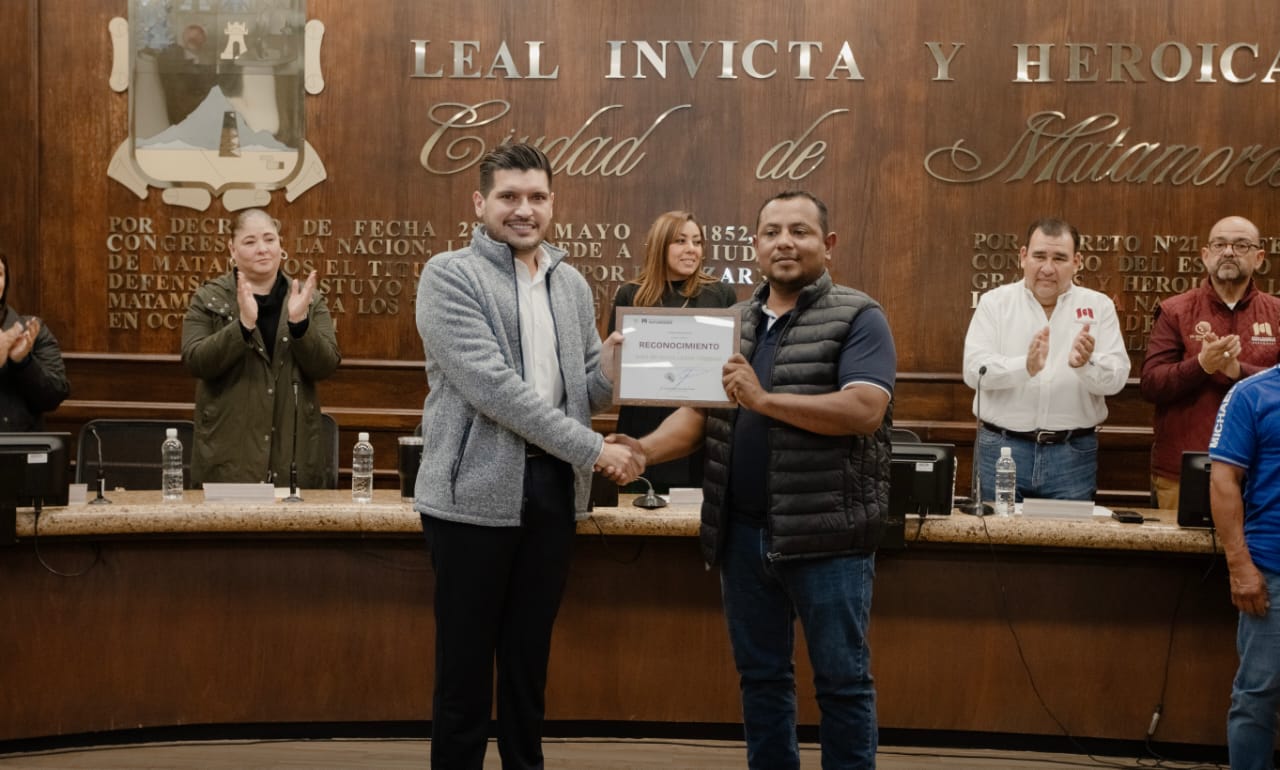 El Republicano Ayuntamiento de Matamoros celebró la quinta sesión ordinaria este pasado martes, la cual fue presidida por el alcalde Alberto Granados Fávila, quien reconoció el valor de la honestidad de un grupo de fajineros de la localidad.