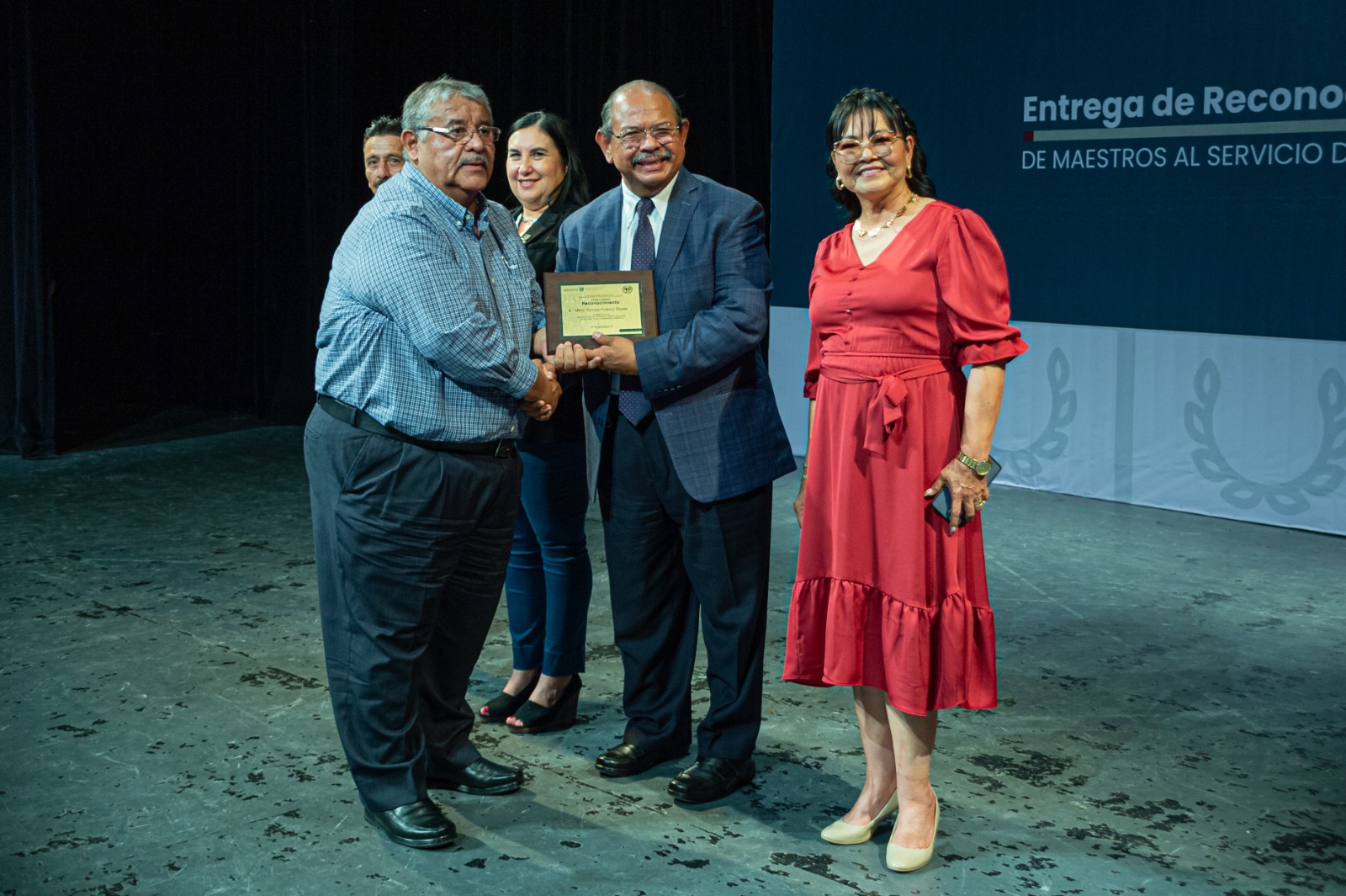 Celebramos hoy agregó, a quienes han entregado 30 y 40 años al servicio de la educación, porque han entregado más del 50 por ciento de su vida a la formación de las niñas y los niños de Matamoros.
