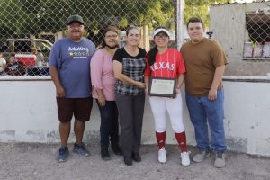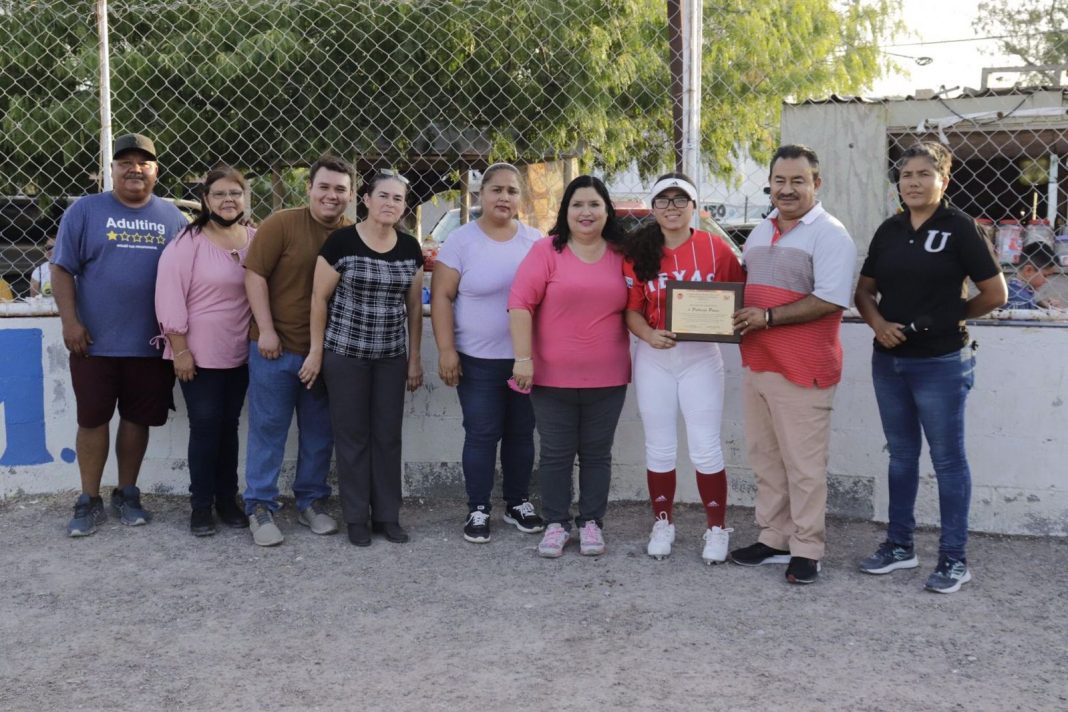 El Secretario General de Federación Regional de Trabajadores de Matamoros Juan Villafuerte Morales en conjunto con la Secretaria de la Liga de Softbol Magda Avalos y la presidenta Susana Rivera entregaron un reconocimiento a la deportista Patricia Ponce quien recientemente se coronó campeona en el “ ll Copa Internacional España 2022”.