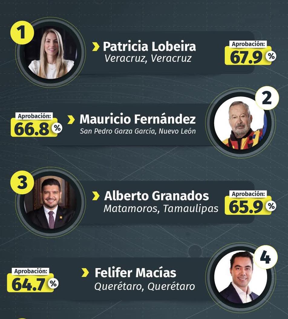 julio; ocupa el tercer lugar en aprobación ciudadana, con un 65.9%, superando a varios presidentes municipales que llevan años sin entregar resultados reales.